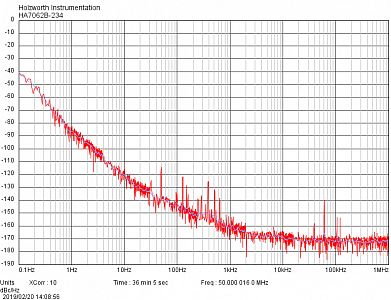 Allan variance at 10 MHz, 1 s: to 5E-12