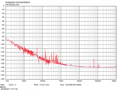 Allan variance at 100 MHz, 1 s: to 1E-11
